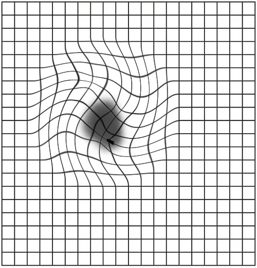 This is how an Amsler grid might look to someone with neovascular AMD (macular degeneration)